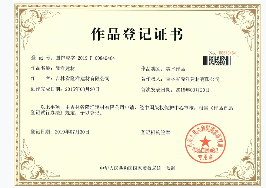 是吉林省隆洋建材有限公司生態(tài)安全與科技創(chuàng)新 “發(fā)明專利”;發(fā)明專利號:ZL 2019 2 0908285.7。